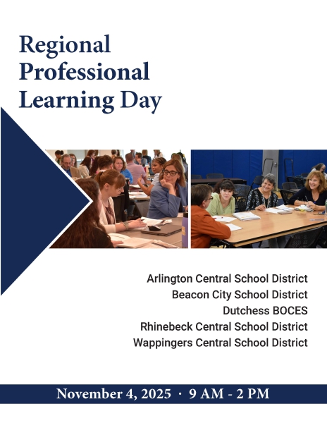 Dutchess BOCES’ Educational Resources (ER) team, along with the Arlington, Beacon, Rhinebeck and Wappingers school districts will host an inaugural Regional Professional Learning Day on November 4 featuring over 70 professional learning opportunities across five sites.