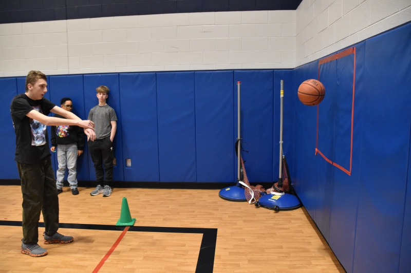 Half of this year’s team of 25 registered athletes are returnees from last year. Special Education Teacher Tracey Smith coaches the students and noted that they are broken up into teams by ability. During a recent practice at the SPC gym, Physical Education Teachers Scott Calcagni and Adam Repinz provided support and encouragement to athletes.