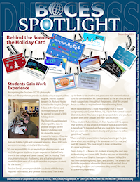 Please enjoy the December issue of Spotlight featuring the designs for this year’s BOCES Holiday Cards. Special thanks to Mr. Lawson and his students in Graphics Design II for permitting our Communications team to visit their class, and for their excellent work on this real-world challenge!