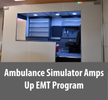 Brent Baugus from Rescue Simulation Products installs the final panel on the simulator.EMT Teacher Danielle Bohlmann and her students have a new tool to help them learn the skills needed to become EMTs with the installation of an ambulance simulator in the classroom. BOCES invested $65,000 to purchase the unit and have it installed.